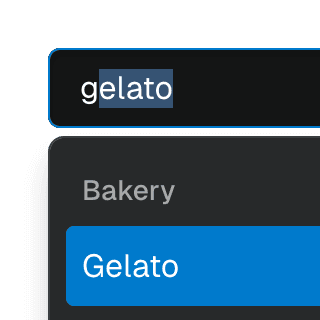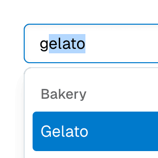 autoCompleteisbothorinline, the first enabled item is automatically focused as the user types in the input. The value gets appended with the completion string if it matches. The inline completion string will be highlighted and selected.If